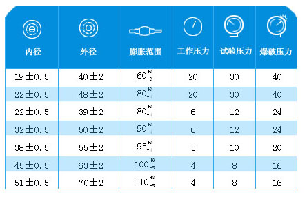 三、技術參數: 封孔直徑 30-120mm(可按用戶需求加工) 工作壓力 1-8MPa(可按用戶需求加工) 安全閥啟動壓力 0.4-0.5MPa 工作流量 每小時可注水4-4.5噸 封孔深度 1-8m 軟管膨脹系數 60%-100%